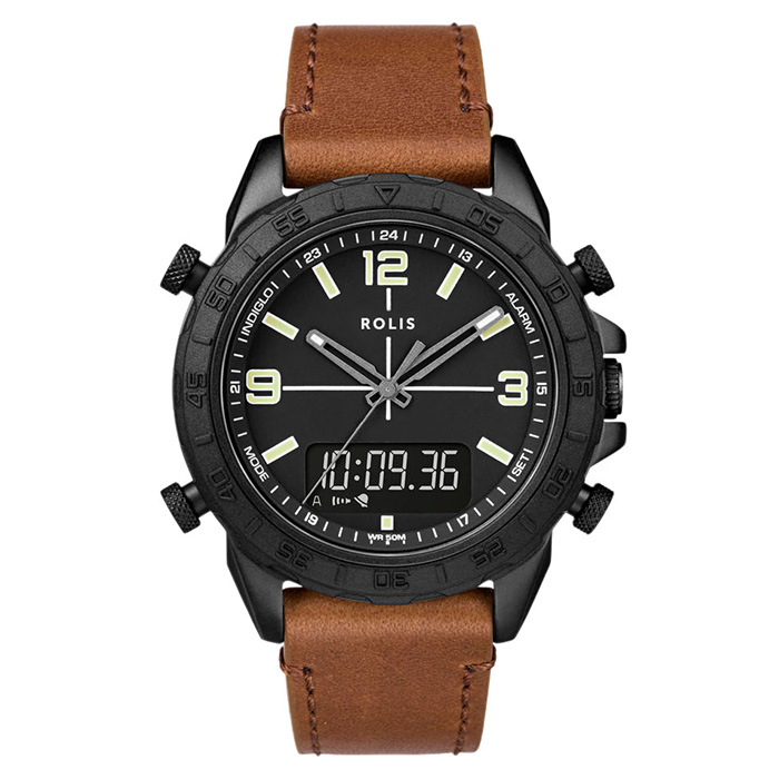 Кварцевые часы Rolis всегда будут точны до миллисекунд. Модель оснащена автоматической светодиодной подсветкой. Ударопрочная, устойчивая к магнитным полям и водонепроницаемая. А кожаный ремешок надежен и прослужит долгие годы.